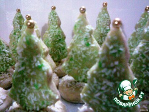 На елочки нанести зеленую глазурь и посыпать зеленой кокосовой стружкой