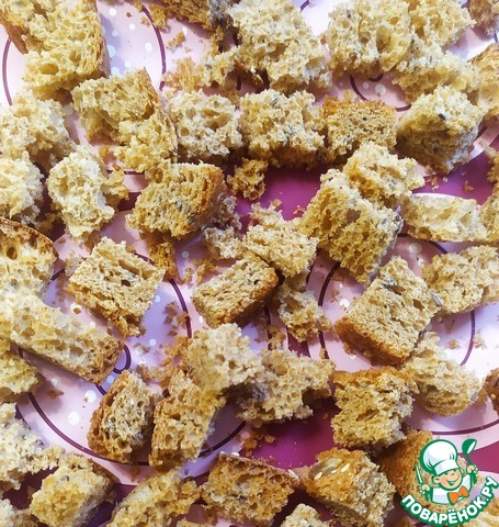 - Сухарики (Хлеб цельнозерновой или ржаной) — 70 г