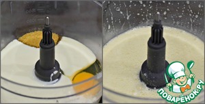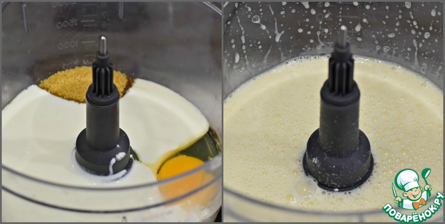 В чашу кухонного комбайна вбить яйцо, всыпать коричневый (или обычный белый) сахар, крахмал и влить натуральный йогурт.