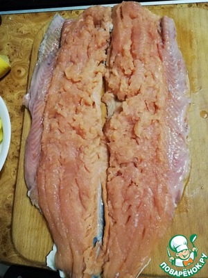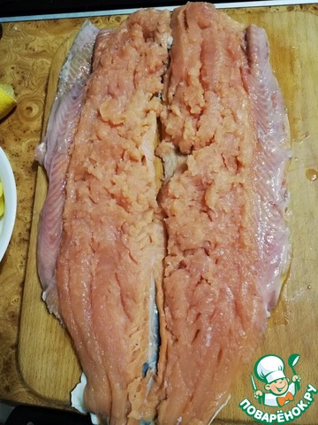 Горбушу почистить, удалить хребет и выбрать косточки. Слегка посолить и сбрызнуть лимонным соком.