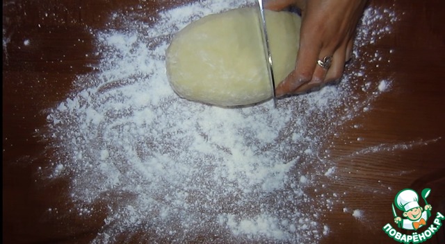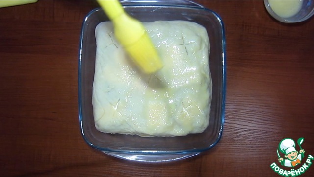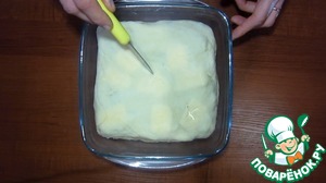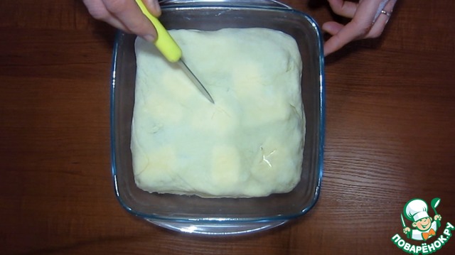 Укладываем раскатанное тесто и аккуратно заворачиваем края.