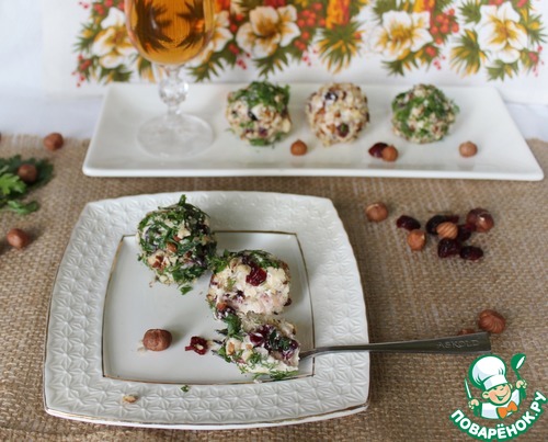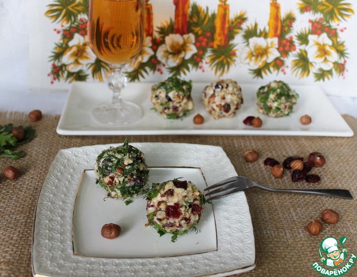 Рецепт «Сырные шарики с орехами и клюквой»: