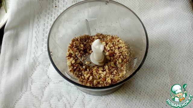 Фундук измельчить, чтобы остались мелкие кусочки.