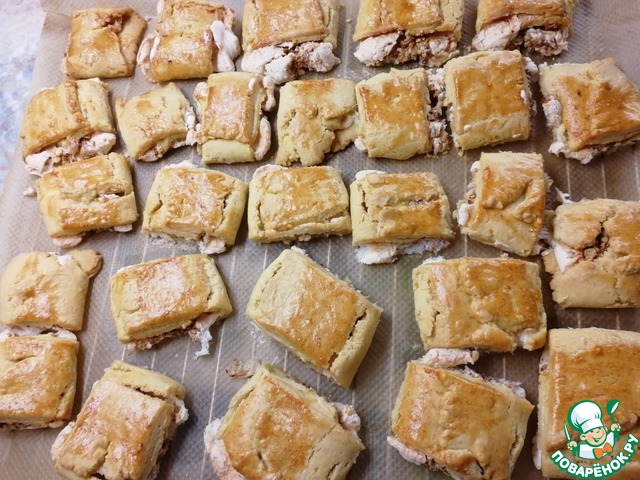 Я, правда, неправильно поняла, что нужно разделить на четыре части, и каждую, как показано на фото, еще разделить пополам. Поэтому, у меня получились большие печенюхи, а при выпечке еще увеличились в размере