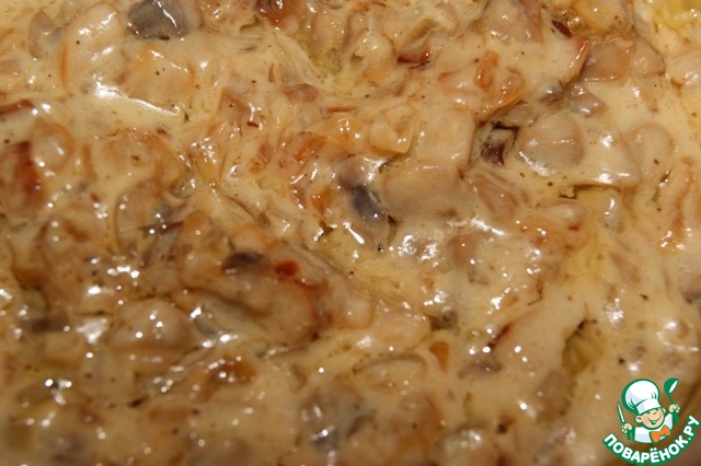 Не кладите очень много начинки, главный у нас - мясной вкус, а грибной жюльен придаст зразам дополнительной сочности и аромата. -