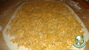 Замесите тесто(мука,кефир,яйцо,соль)пока готовите начинку, пусть тесто у вас немного полежит