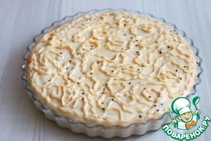 Пирог смазать взбитым яйцом, присыпать семенами кунжута.