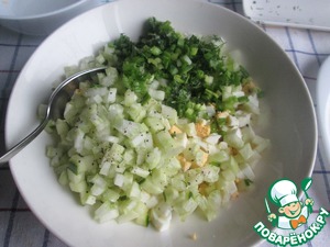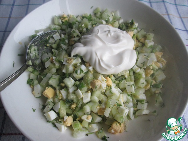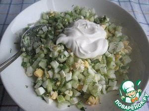 Добавить майонез ( по желанию - йогурт, или сметана с майонезом) и ещё раз перемешать.
