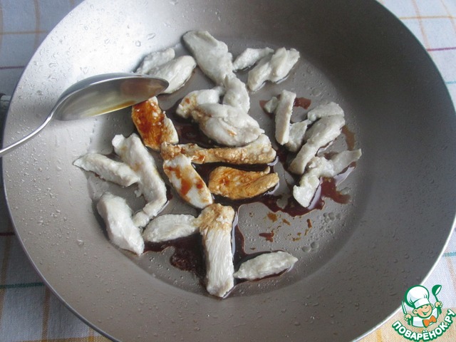 Затем добавить соевый соус, и под крышкой тушить до готовности. -