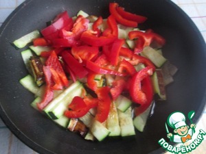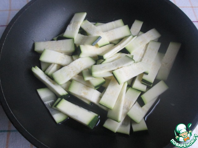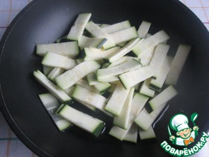 Цуккини нарезать ломтиками, или брусочками, и слегка обжарить.