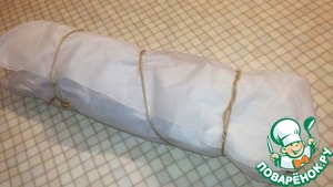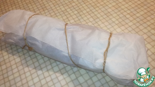 Завернуть хорошо в пергаментную бумагу. Я делаю в двойной слой. И завязать шпагатом.