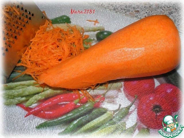 1 морковь среднего размера промыть, очистить и натереть на мелкой тёрке.