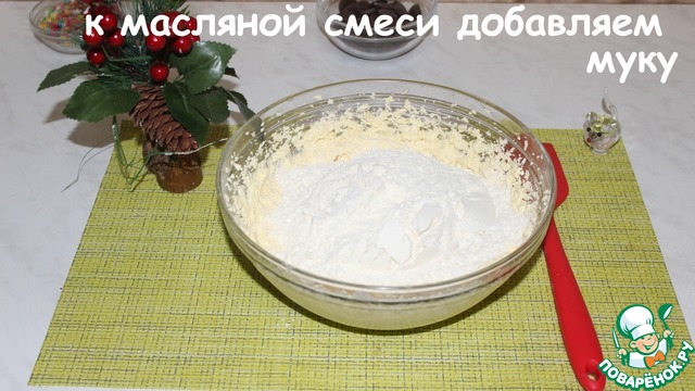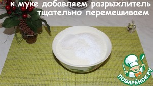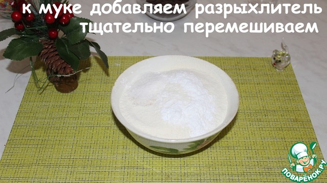 К муке добавляем разрыхлитель, тщательно перемешиваем.