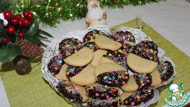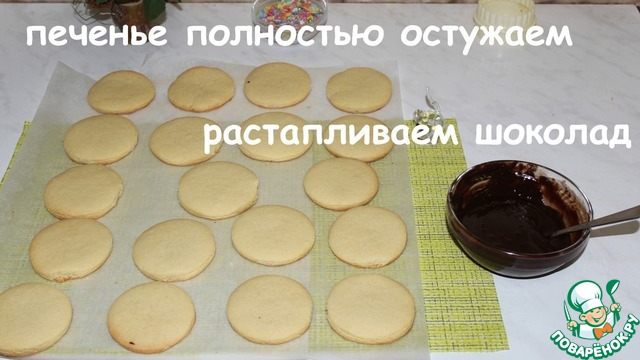 Каждое печенье окунаем в шоколад и посыпаем кондитерской посыпкой.