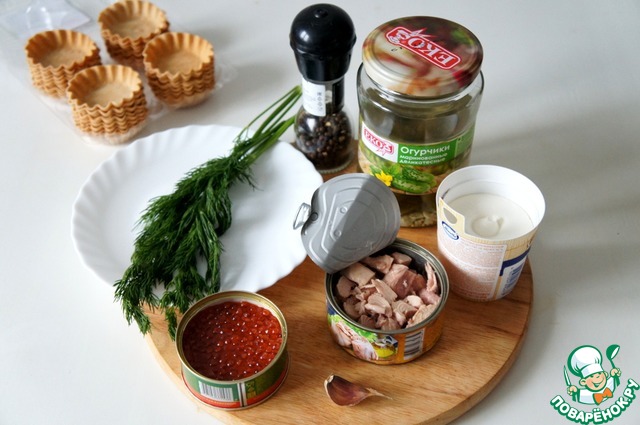 Ингредиенты для «Тарталетки с тунцом, огурцами и икрой»: