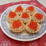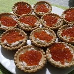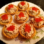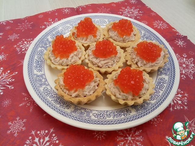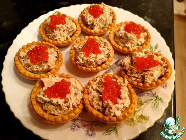 Тарталетки с тунцом, огурцами и икрой