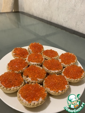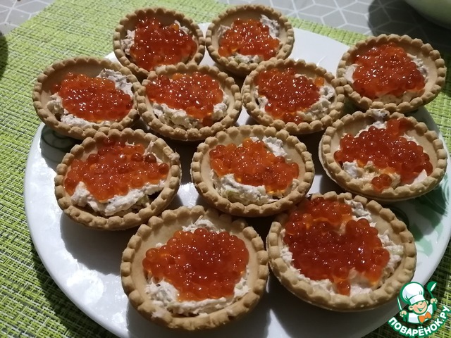 Рецепт «Тарталетки с тунцом, огурцами и икрой»: