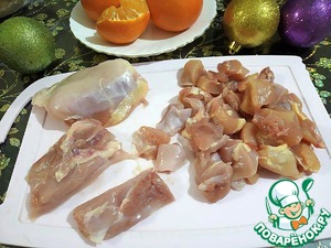 Отделяем мясо от костей и нарезаем небольшими произвольными кусочками.