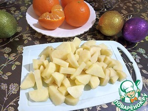 Очищенную картошку нарезаем на небольшие произвольные кусочки.
