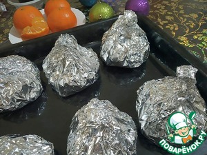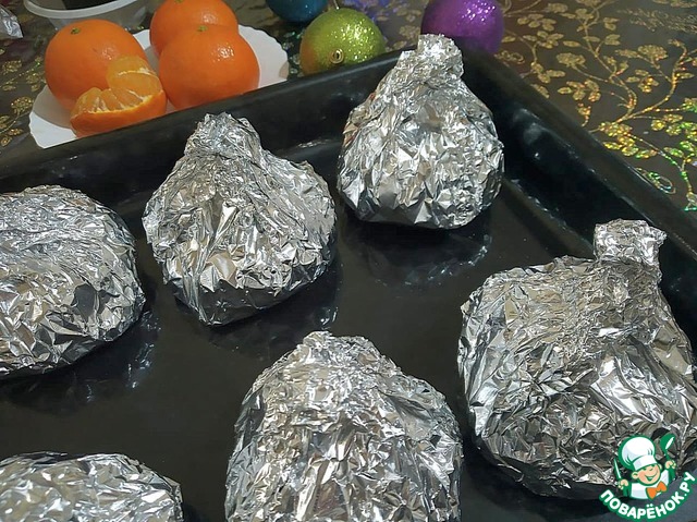 Сначала аккуратно упаковываем в первый слой фольги. Затем во второй.