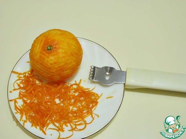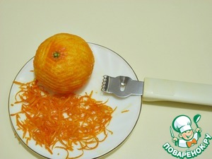 С одного крупного мандарина снять цедру. Из него же выдавить сок, надо 40 мл.