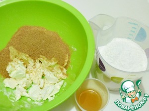 Мягкое масло растереть с коричневым сахаром. Сахар можно взять и белый, но коричневый придает выпечке нежный карамельный привкус.