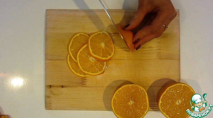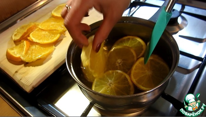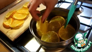 Затем добавляем кружочки апельсина и провариваем 15 минут. -