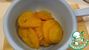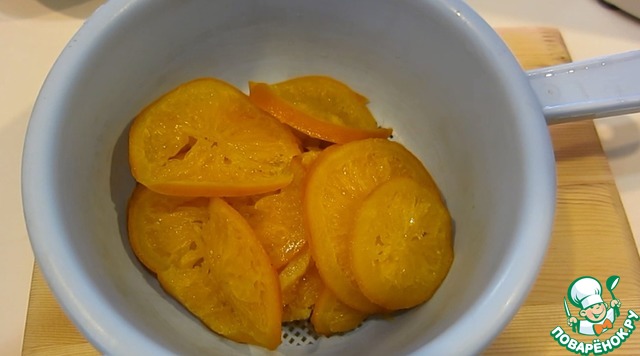 Готовые апельсины выкладываем в дуршлаг и остужаем.