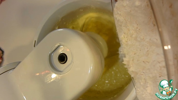 Смешиваем муку и разрыхлитель. Замешиваем тесто.