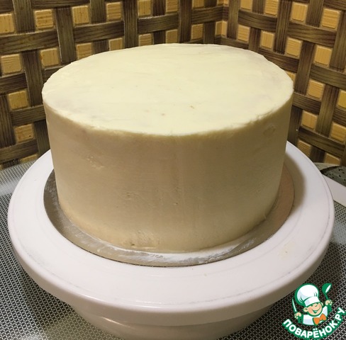 Затем выравниваем кремом верх и бока торта. -