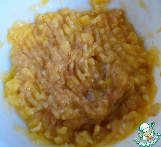 • Муку просеянную с разрыхлителем вмешать в жидкие ингредиенты. Получается не густое тесто.