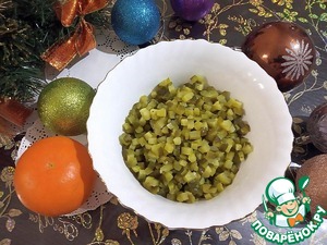 Огурцы нарезаем маленькими кубиками и отжимаем (чтобы наш салат потом не "расползался" от лишней влаги).