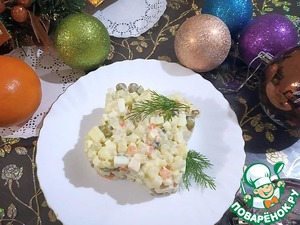 Вроде бы оливье, как оливье, и в каждой семье есть уже "свой" рецепт. Предлагаю попробовать "мой" вариант - благодаря ингредиентам, салат получается с интересным и очень приятным вкусом.