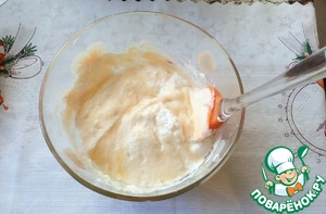 Частями добавляем взбитые белки. Первую порцию вмешиваем интенсивно. Остальные аккуратно снизу вверх.