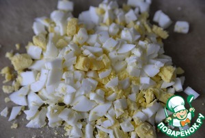 Кубиками режем маринованные огурцы, у меня ТМ ЕКО.