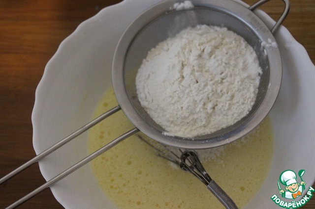 Затем вмешиваем муку (100г) с крахмалом (20г)