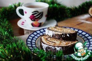 Опять сворачиваем в рулет, закручиваем в пленку и отравляем в холодильник на 1,5 часа застыть. -