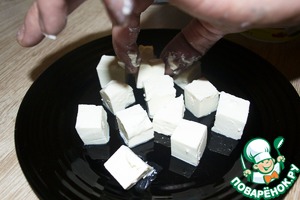6. Далее не крупно нарежьте сыр, количество определите по вкусу.