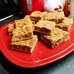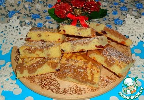 Испечь в духовке при температуре 180 градусов, понадобится около 15 минут. Теплое печенье порезать на квадратики.