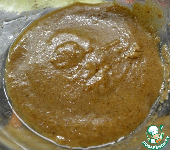 Замочить лен (это замена яйцу), влить растительное масло и сахар. Взбить.