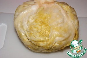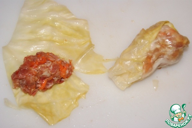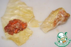 Если хочете форму рулетиком, тогда заправьте капусту с обеих сторон. -