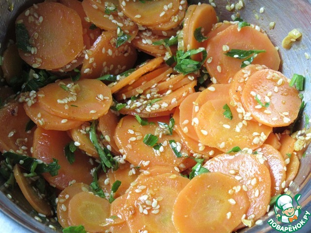 Перед Вами необычный салат из моркови с восточными пряностями и кунжутом - Moroccan carrot salad. Готовится этот салат очень просто и быстро, особенно, если у Вас есть кухонный комбайн, и прекрасно будет смотреться на новогоднем столе. Очень вкусный, яркий и пряный салат! Попробуйте ;)