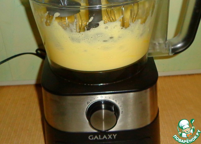 В чашу кухонного комбайна разбить куриные сырые яйца, можно насыпать немного соли, она улучшает процесс взбивания. Вставить венчики и взбить.