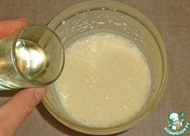 Теперь тесто можно перемешивать лопаткой. Перелить тесто в глубокую посуду, налить растительное масло.