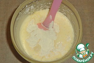 Насыпать муку и разрыхлитель, перемешать до однородности.