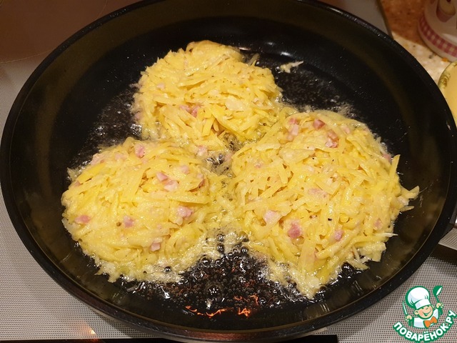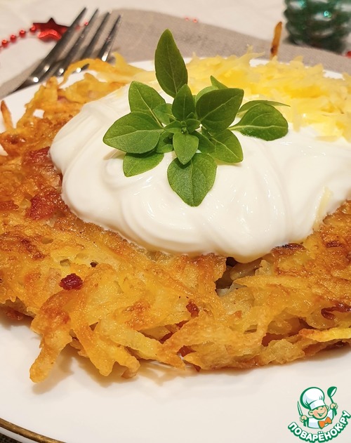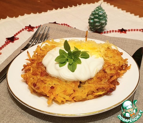 Рецепт «Драники картофельные с грудинкой "Новогодний сюрприз"»: