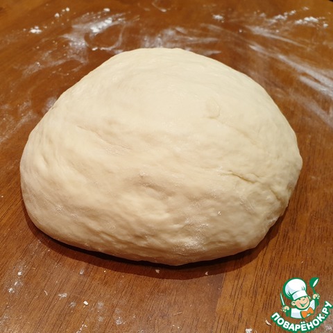 Подошедшее тесто выложить на подпылённую мукой поверхность и обмять. Если у Вас форсмажор со временем, как в этот раз случилось у меня, можете убрать обмятое тесто в холодильник в миске, затянутой пищевой плёнкой. За сутки с тестом ничего критического не произойдёт, но перед дальнейшим приготовлением пирога, тесто следует выдержать некоторое время, примерно 1-2часа, при комнатной температуре.