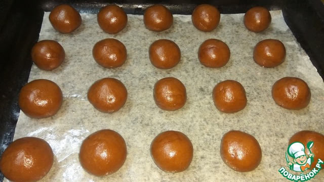 Отщипнуть по кусочку тесто, скатать шарики. У меня получилось 25 шт.