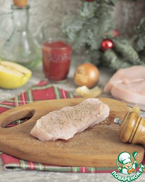 Филе индейки моем, просушиваем. Порционно нарезаем, солим и перчим. Отставляем.
