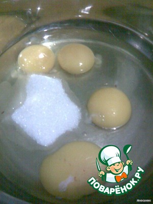 слегка взбить яйца и сахар